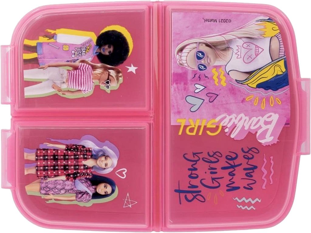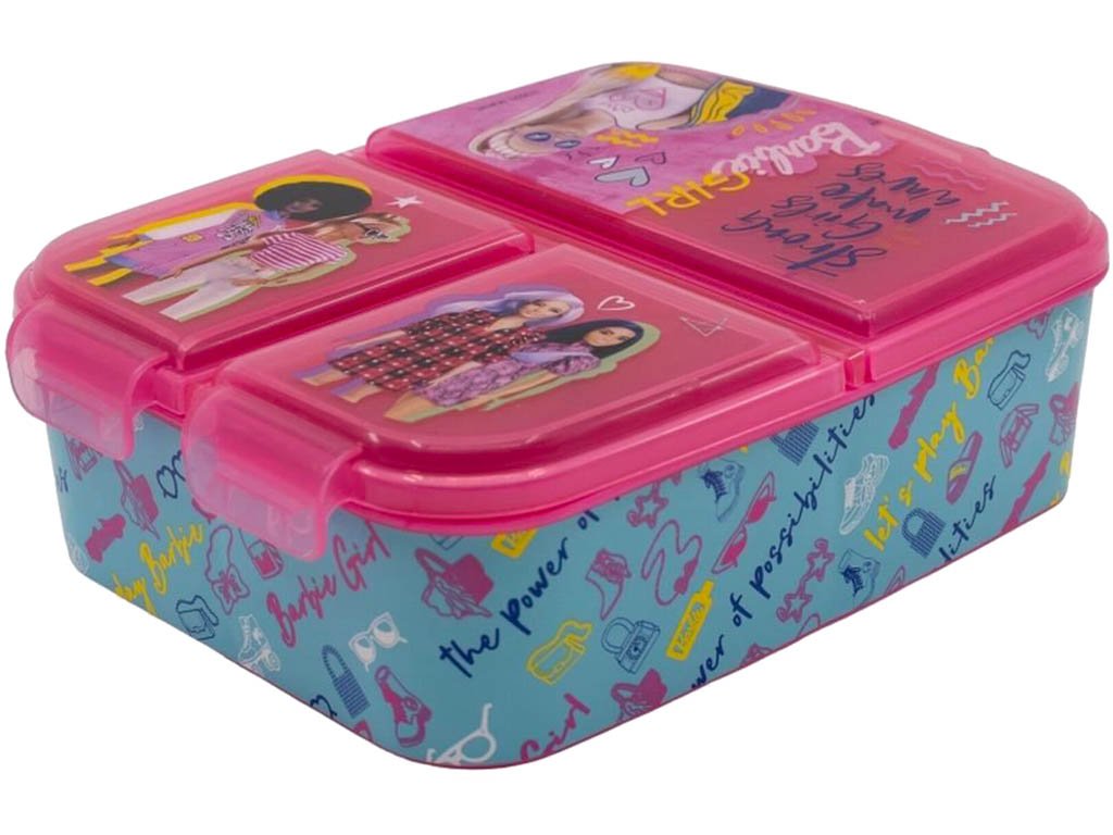Praktický dělený box na svačinu Barbie je ideální pro děti do školy, školky i na výlety. Díky veselému motivu Barbie bude každá svačina ještě zábavnější. 🎀