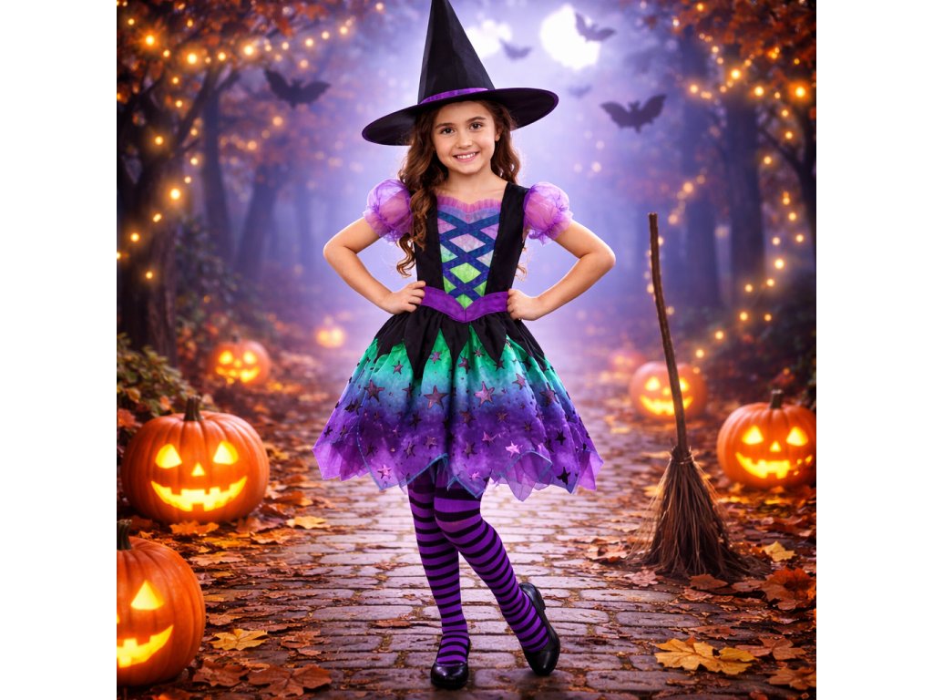 Ideální volba pro karnevaly, Halloween, školní akce nebo pohádkové hry, kde se malé čarodějky mohou proměnit v opravdové kouzelnice.
