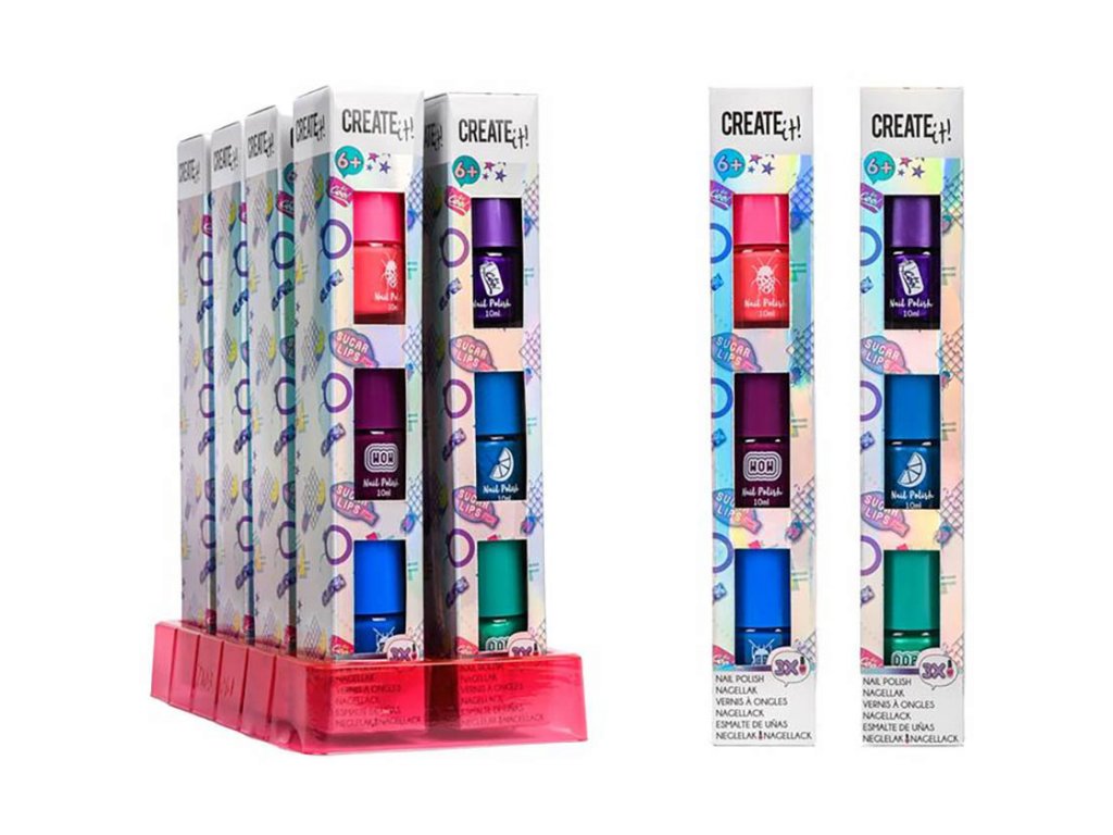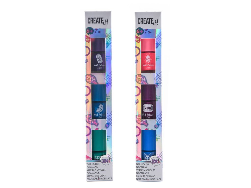 Balení obsahuje 3 laky na nehty v různých barvách, které umožňují vytvářet různé kombinace a stylové nehty. Na výběr jsou dvě barevné varianty, takže si každá malá parádnice může vybrat svou oblíbenou.