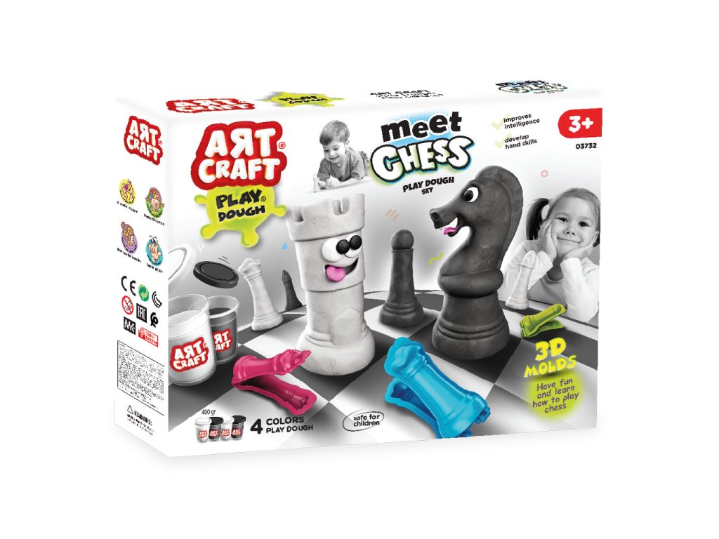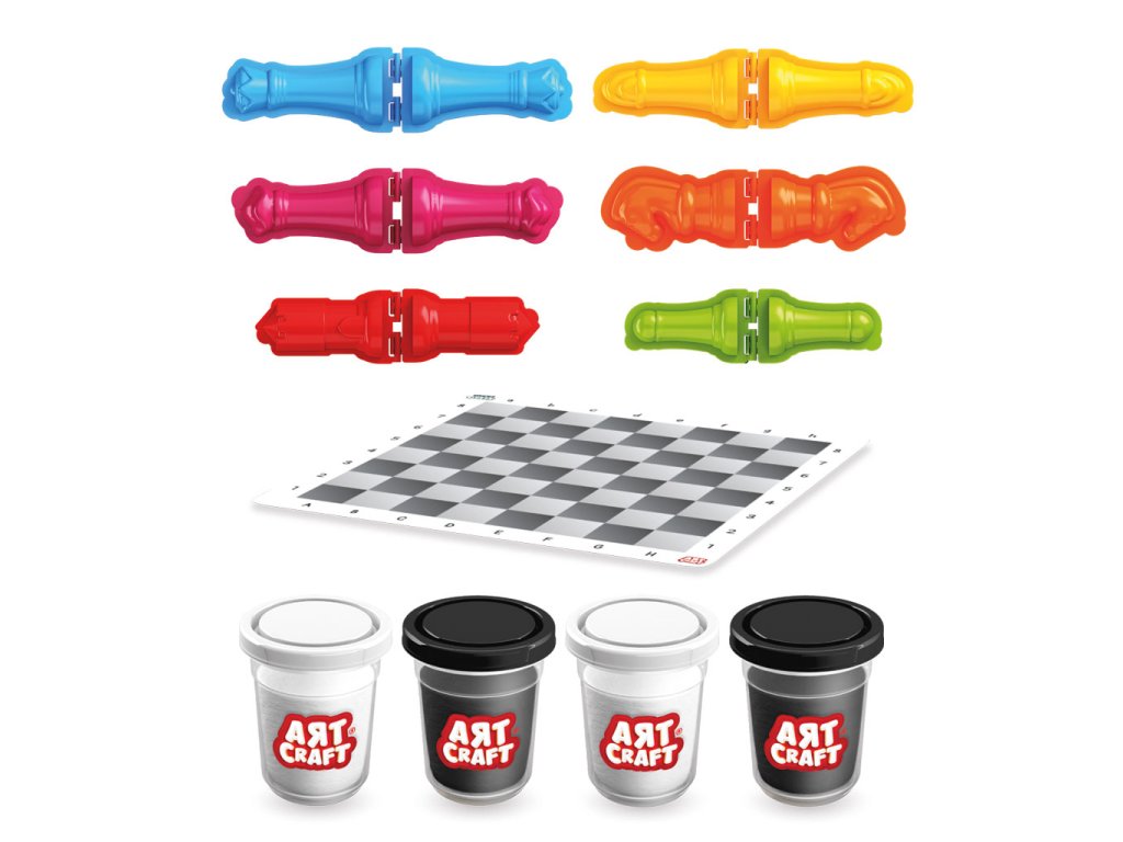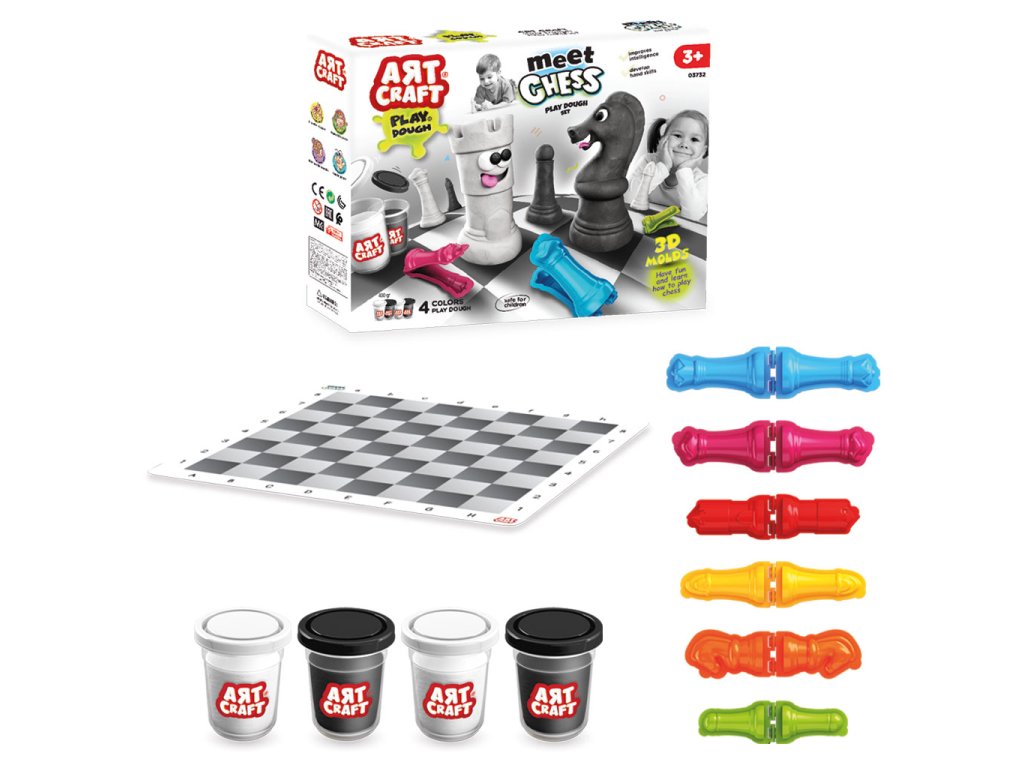 Edukační a kreativní sada ART CRAFT Meet Chess spojuje modelování s učením logické hry. Pomocí plastelíny a 3D formiček si děti vytvoří vlastní šachové figurky a zároveň se nenápadně seznamují se základními principy šachové hry.