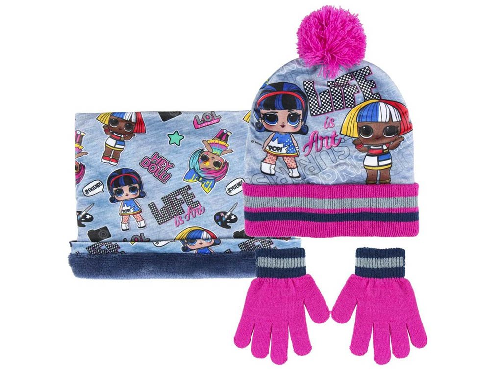 Dětská zimní sada LOL Surprise – čepice, nákrčník a rukavice