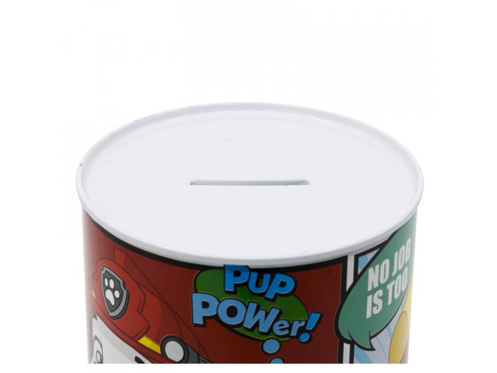 Tato dětská plechová pokladnička Paw Patrol Comic XL je ideální pro malé spořitele, kteří milují dobrodružství Tlapkové Patroly! 🎉 Celý obvod pokladničky zdobí barevný komiksový potisk s oblíbenými pejsky, díky kterému se stane skvělým doplňkem dětského pokoje.