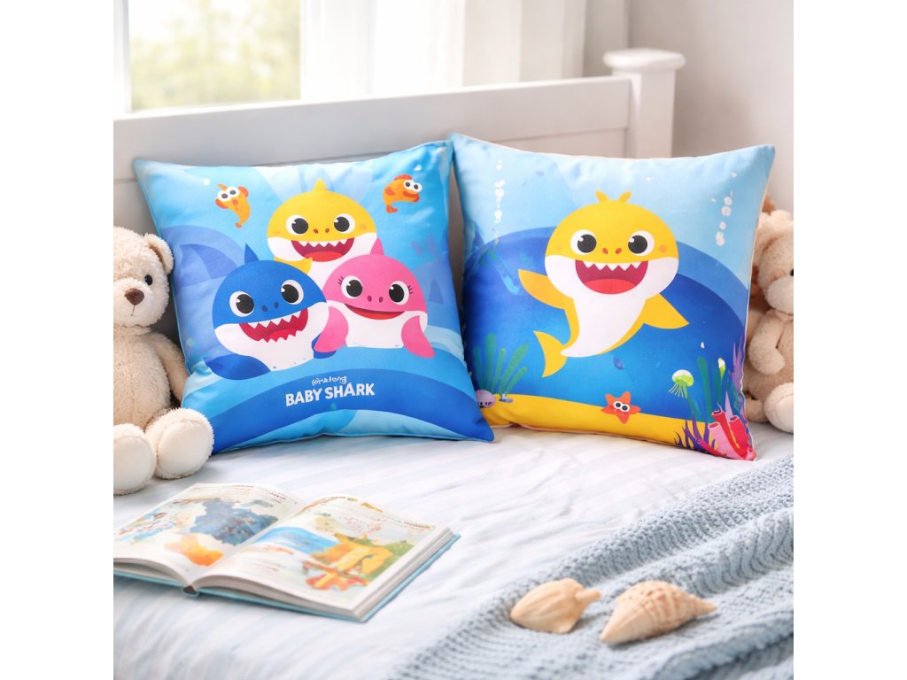 Polštář v designu Baby Shark. Včetně výplně, rozměry cca. 40x40cm.