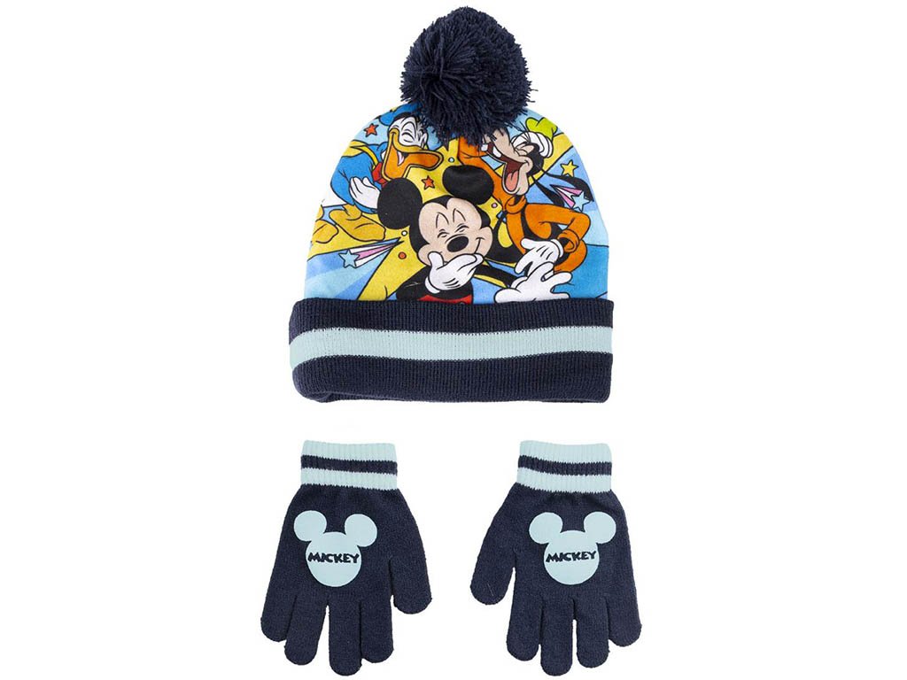 Dětská zimní sada Mickey Mouse – čepice s bambulí a rukavice