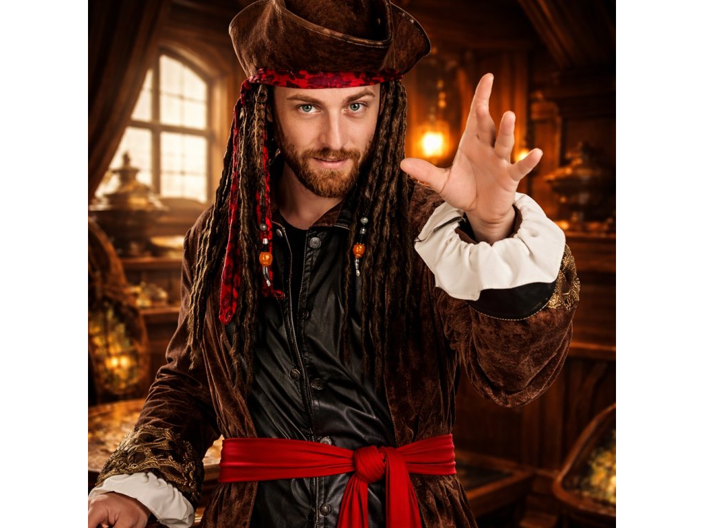 🏴☠️ Tento pirátský klobouk s umělými vlasy je ideálním doplňkem pro karneval, tematickou oslavu nebo domácí hraní na piráty. Ke klobouku je pevně připevněn šátek a dlouhé pirátské vlasy zdobené korálky, díky čemuž působí velmi realisticky a výrazně.