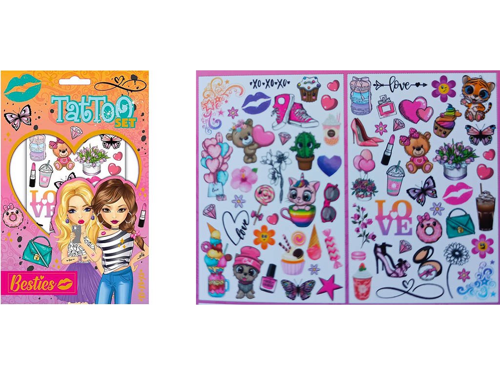 🎨 Dětské tetování Besties pro holky 2 archy je zábavný a stylový doplněk pro děti.