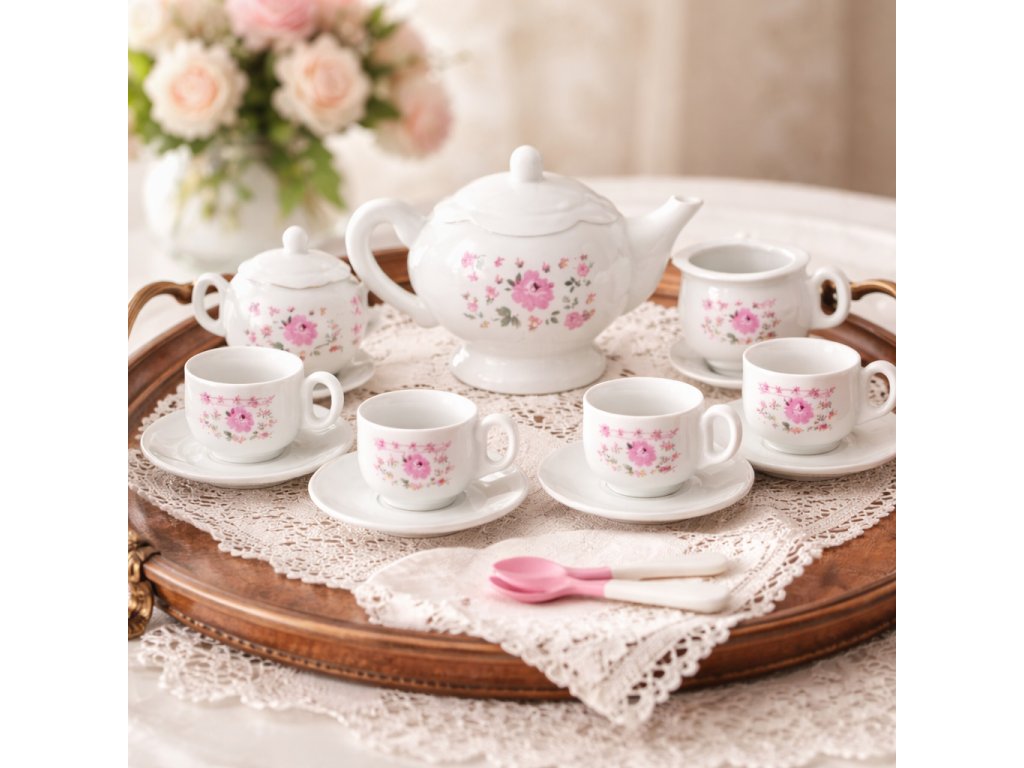 Tato dětská plastová čajová sada je ideální pro hraní na návštěvy, kavárnu nebo rodinný čaj. Díky lehkému plastovému provedení je bezpečná pro děti a vhodná na každodenní hraní.