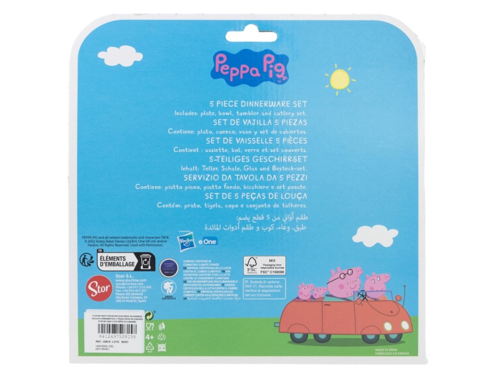5-dílný jídelní plastový set - miska, talířek, kelímek a příbor (lžička a vidlička).