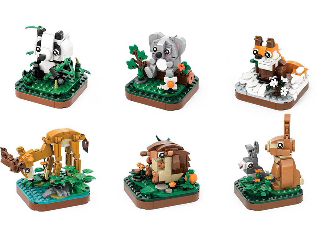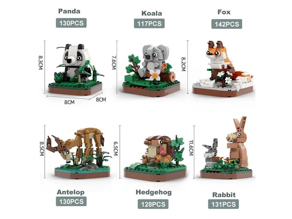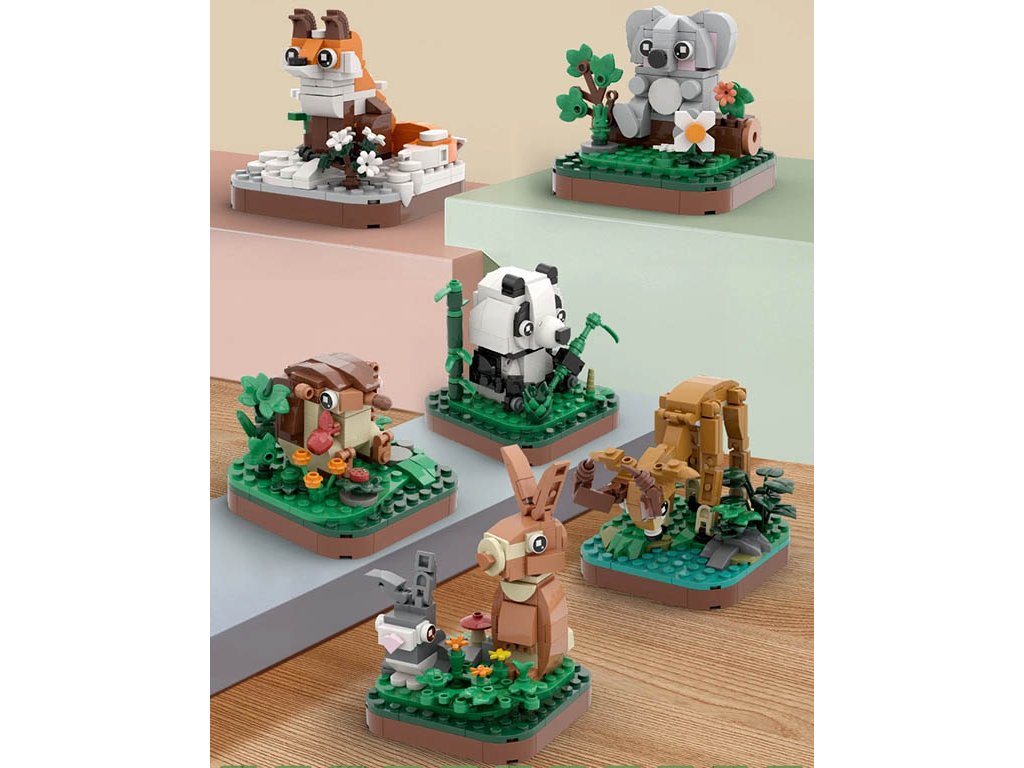 Zvířátka jsou zasazena do tematického prostředí – například panda mezi bambusy, liška na zasněžené ploše nebo koala s eukalyptem. Tyto drobné stavebnice potěší děti od 6 let i dospělé sběratele díky preciznímu zpracování a kompatibilitě s dalšími stavebními značkami.