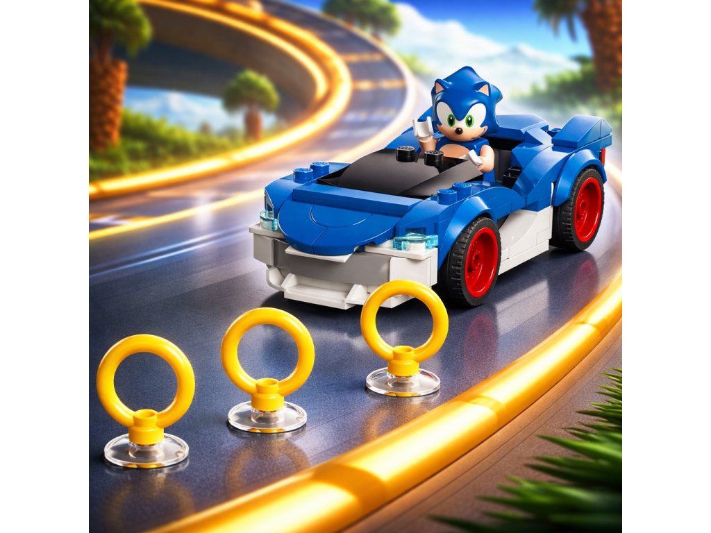 Auto je vybaveno otevírací kapotou, pod kterou se ukrývá Chaos Emerald, a nechybí ani tři ikonické zlaté prsteny, které Sonic sbírá během jízdy. Stavebnice podporuje kreativní hraní, představivost a rozvoj stavebních dovedností.