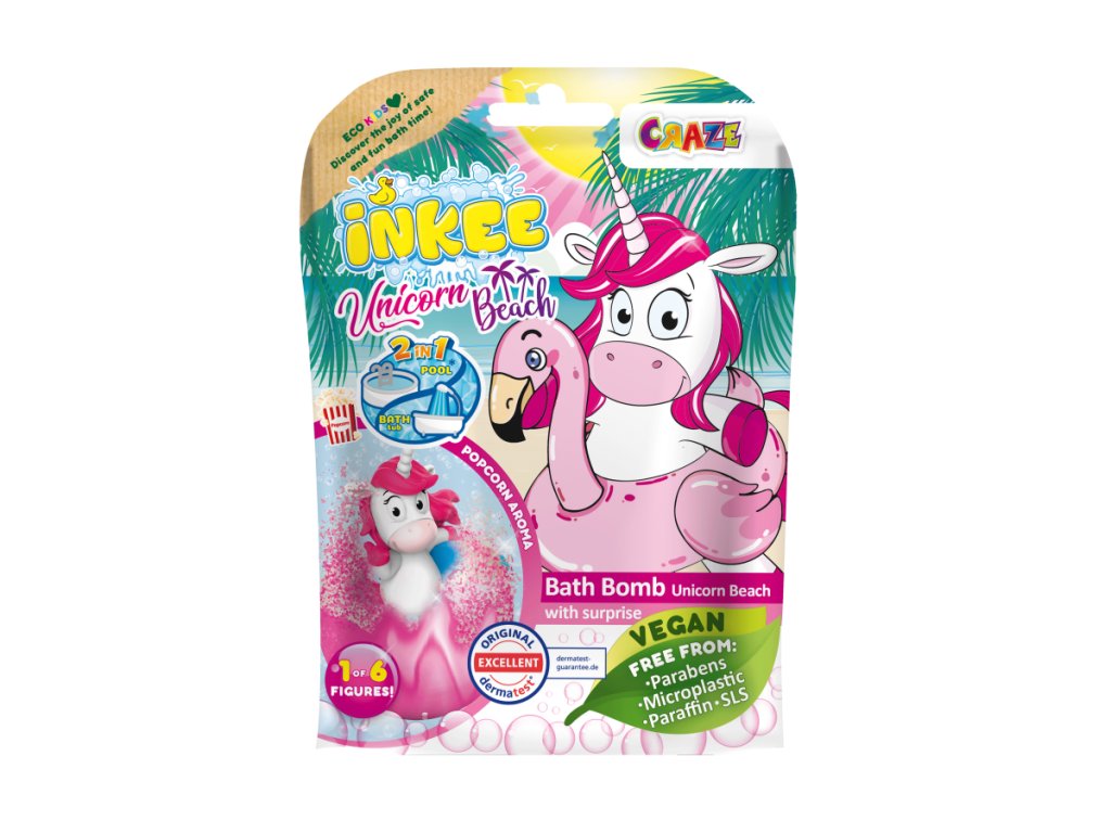 Objevte kouzelný svět koupele s INKEE šumivou bombou Unicorn! 🌈 Po vhození do vody začne bomba šumět, uvolňovat bublinky a sladkou vůni popcornu, která provoní celou koupel.