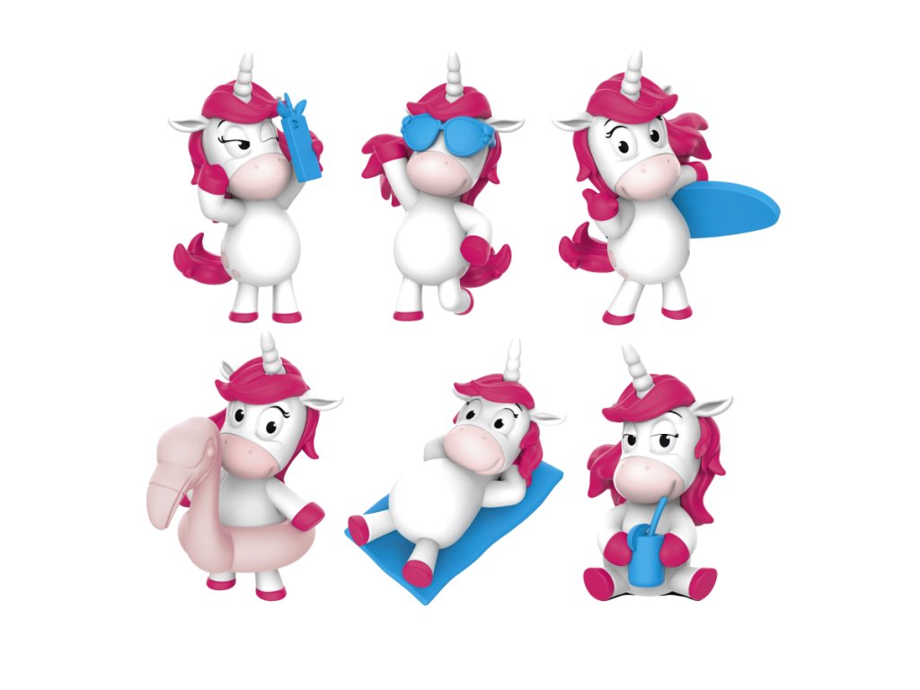 Uvnitř 1 ze 6 sběratelských figurek jednorožců