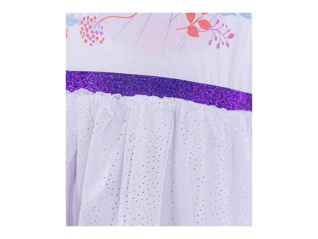Horní část je ozdobena třpytivými flitry, které dodávají šatičkám slavnostní vzhled. Spodní část tvoří jemná tylová sukýnka, která krásně splývá a vytváří pohádkový efekt. Díky 100% bavlně jsou šaty šetrné k dětské pokožce a vhodné i pro delší nošení.