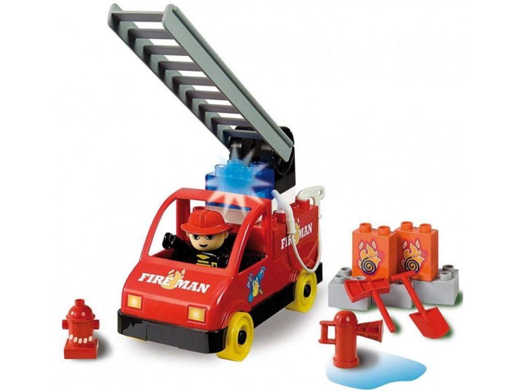 Sada obsahuje 20 dílků včetně hasičského auta, figurky a doplňků. Děti si mohou vytvářet vlastní záchranářské scénáře.
