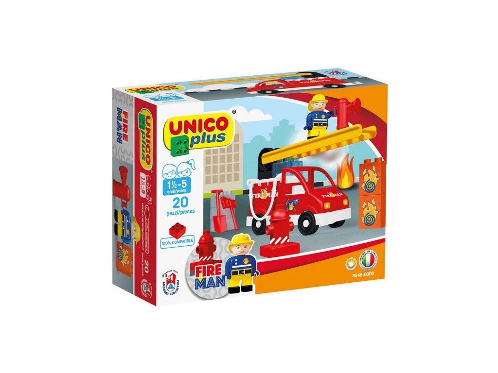 Stavebnice Hasičské auto s figurkou 20 dílků Unico Plus