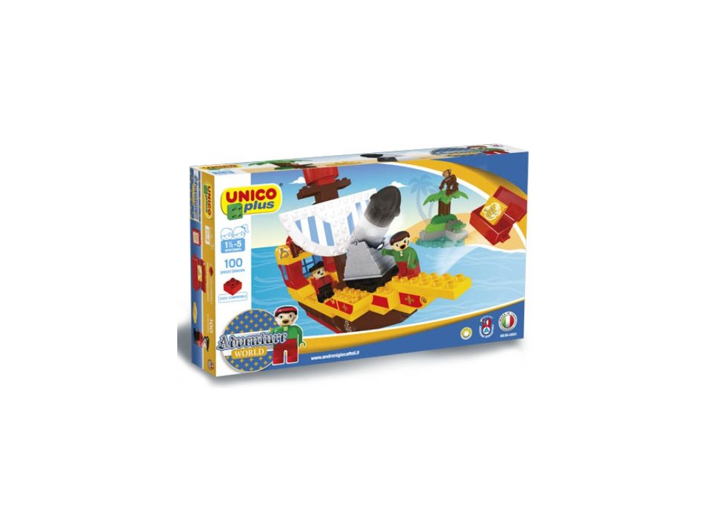 Stavebnice UNICO PLUS – Pirátská loď vtáhne děti do světa pirátů a dobrodružství na moři. Dominantou stavebnice je velká pirátská loď s dělem a dalším tematickým příslušenstvím, které rozšiřuje možnosti hry.